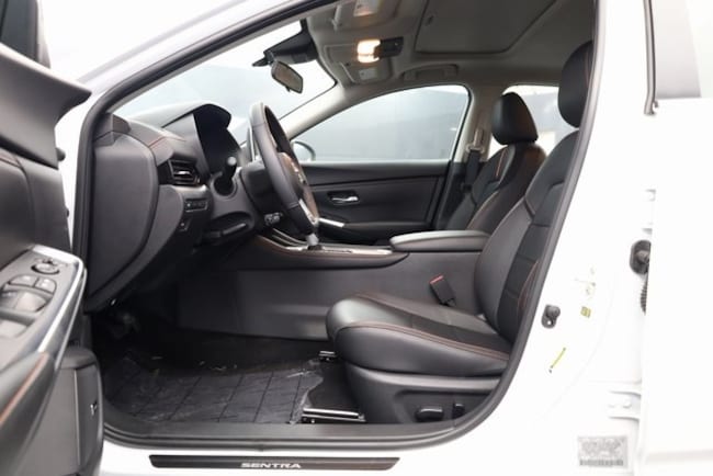 This Sentra is well equipped with SR Premium Package (6-Way Power Driver's Seat, Bose Premium Audio System w/8 Speakers, Heated Steering Wheel, Intelligent Around View Monitor (I-AVM), Leatherette Seat Trim, NissanConnect Services, Power Sliding Glass Moonroof w/Tilt Feature, Sunvisors w/Illuminated Vanity Mirrors, and Wi-Fi Hotspot), CVT with Xtronic, Sport Cloth, 18" Alloy Wheels, 4-Wheel Disc Brakes, 6 Speakers, ABS brakes, Air Conditioning, Alloy wheels, AM/FM radio: SiriusXM, Auto High-beam Headlights, Automatic temperature control, Blind Spot Warning, Brake assist, Bumpers: body-color, Carpeted Floor Mats w/Trunk Mat, Clear Rear Bumper Protector, Delay-off headlights, Door Sill Plates, Driver door bin, Driver vanity mirror, Dual front impact airbags, Dual front side impact airbags, Electronic Stability Control, Four wheel independent suspension, Front anti-roll bar, Front Bucket Seats, Front Center Armrest, Front dual zone A/C, Front reading lights, Fully automatic headlights, Heated door mirrors, Heated Front Bucket Seats, Heated front seats, Illuminated entry, Knee airbag, Leather Shift Knob, Leather steering wheel, Low tire pressure warning, Map Pocket Lighting, Nissan Connect featuring Apple CarPlay and Android Auto, Nissan USB Charging Cable Set, Occupant sensing airbag, Outside temperature display, Overhead airbag, Overhead console, Panic alarm, Passenger door bin, Passenger vanity mirror, Power door mirrors, Power steering, Power windows, Radio data system, Radio: AM/FM w/RDS/MP3/Aux-In, Rear anti-roll bar, Rear Parking Sensors, Rear seat center armrest, Rear side impact airbag, Rear window defroster, Remote keyless entry, Security system, Speed control, Speed-sensing steering, Split folding rear seat, Spoiler, Sport Cloth Seat Trim, Steering wheel mounted audio controls, Tachometer, Technical Spec Change 2, Telescoping steering wheel, Tilt steering wheel, Traction control, Trip computer, Turn signal indicator mirrors, and Variably intermittent wipers.