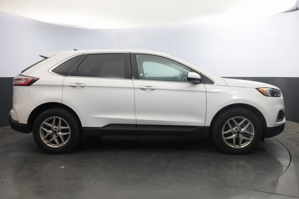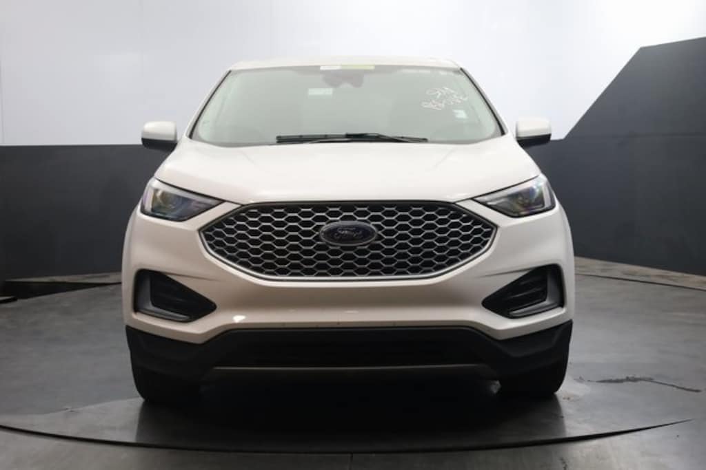 This Edge is well equipped with AWD, 3.80 Axle Ratio, 4-Wheel Disc Brakes, 6 Speakers, ABS brakes, ActiveX Trimmed Heated Bucket Seats, Air Conditioning, Alloy wheels, AM/FM radio: SiriusXM with 360L, AM/FM Stereo, Auto High-beam Headlights, Auto-dimming Rear-View mirror, Automatic temperature control, Brake assist, Bumpers: body-color, Compass, Delay-off headlights, Driver door bin, Driver vanity mirror, Dual front impact airbags, Dual front side impact airbags, Electronic Stability Control, Emergency communication system: SYNC 4 911 Assist, FordPass Connect, Four wheel independent suspension, Front anti-roll bar, Front Bucket Seats, Front Center Armrest w/Storage, Front dual zone A/C, Front reading lights, Fully automatic headlights, Heated door mirrors, Heated front seats, Illuminated entry, Knee airbag, Leather steering wheel, Low tire pressure warning, Occupant sensing airbag, Outside temperature display, Overhead airbag, Overhead console, Panic alarm, Passenger door bin, Passenger vanity mirror, Power door mirrors, Power driver seat, Power Liftgate, Power passenger seat, Power steering, Power windows, Rear anti-roll bar, Rear Parking Sensors, Rear reading lights, Rear seat center armrest, Rear window defroster, Rear window wiper, Remote keyless entry, SiriusXM w/360L, Speed control, Speed-Sensitive Wipers, Split folding rear seat, Spoiler, Steering wheel mounted audio controls, SYNC 4A w/Enhanced Voice Recognition, Tachometer, Telescoping steering wheel, Tilt steering wheel, Traction control, Trip computer, and Variably intermittent wipers.