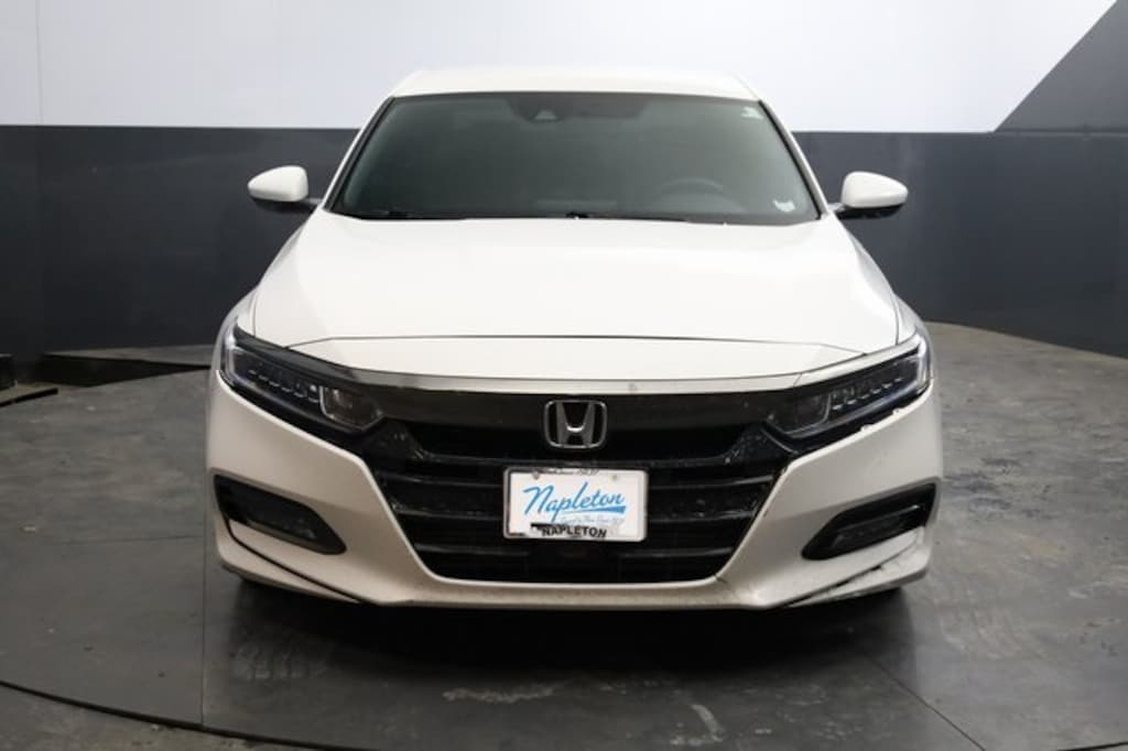This Accord is well equipped with Cloth, 4-Wheel Disc Brakes, 8 Speakers, ABS brakes, Air Conditioning, Alloy wheels, AM/FM radio, Apple CarPlay/Android Auto, Auto High-beam Headlights, Automatic temperature control, Brake assist, Bumpers: body-color, Cloth Seat Trim, Delay-off headlights, Driver door bin, Driver vanity mirror, Dual front impact airbags, Dual front side impact airbags, Electronic Stability Control, Emergency communication system: HondaLink, Exterior Parking Camera Rear, Forward collision: Collision Mitigation Braking System (CMBS) + FCW mitigation, Four wheel independent suspension, Front anti-roll bar, Front Bucket Seats, Front Center Armrest, Front dual zone A/C, Front fog lights, Front reading lights, Fully automatic headlights, Illuminated entry, Knee airbag, Leather Shift Knob, Leather steering wheel, Low tire pressure warning, Occupant sensing airbag, Outside temperature display, Overhead airbag, Overhead console, Panic alarm, Passenger door bin, Passenger vanity mirror, Power door mirrors, Power driver seat, Power steering, Power windows, Radio data system, Radio: 180-Watt AM/FM Audio System, Rear anti-roll bar, Rear seat center armrest, Rear window defroster, Remote keyless entry, Security system, Speed control, Speed-sensing steering, Speed-Sensitive Wipers, Split folding rear seat, Spoiler, Steering wheel mounted audio controls, Tachometer, Telescoping steering wheel, Tilt steering wheel, Traction control, Trip computer, Variably intermittent wipers, and Wheels: 19" Machine-Finished Alloy w/Black Inserts.