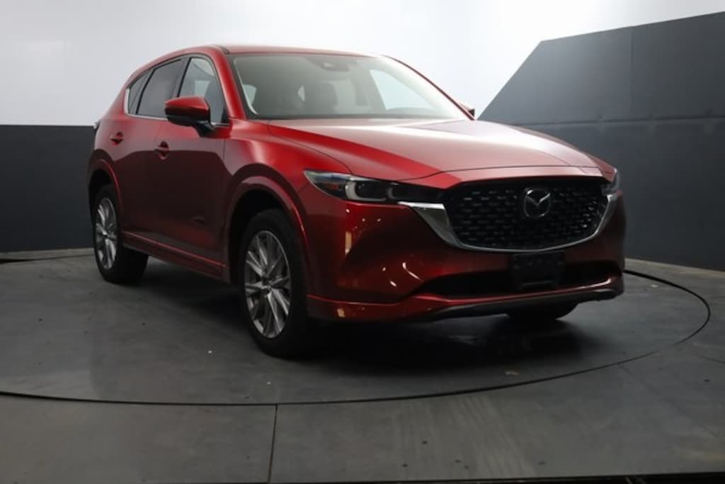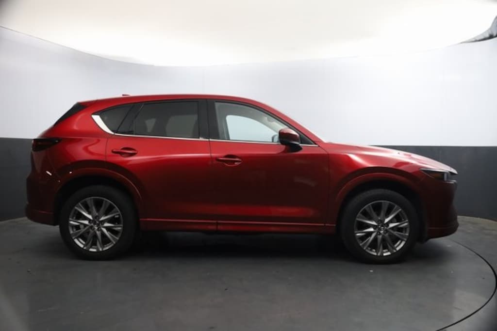 This Mazda CX-5 is well equipped with 10 Speakers, 4-Wheel Disc Brakes, 4.624 Axle Ratio, ABS brakes, Air Conditioning, Alloy wheels, AM/FM radio: SiriusXM, AppLink/Apple CarPlay and Android Auto, Auto High-beam Headlights, Auto-dimming Rear-View mirror, Automatic temperature control, Brake assist, Bumpers: body-color, Delay-off headlights, Driver door bin, Driver vanity mirror, Dual front impact airbags, Dual front side impact airbags, E911 Automatic Emergency Notification, Electronic Stability Control, Emergency communication system: MAZDA CONNECT, Exterior Parking Camera Rear, Four wheel independent suspension, Front anti-roll bar, Front Bucket Seats, Front Center Armrest w/Storage, Front dual zone A/C, Front reading lights, Fully automatic headlights, Garage door transmitter: HomeLink, Heated door mirrors, Heated Front Bucket Seats, Heated front seats, Illuminated entry, Infotainment System Voice Command, Leather Seat Trim, Leather Shift Knob, Leather steering wheel, Low tire pressure warning, Memory seat, Multifunction Commander Control, Occupant sensing airbag, Outside temperature display, Overhead airbag, Overhead console, Pandora, Panic alarm, Passenger door bin, Passenger vanity mirror, Power door mirrors, Power driver seat, Power Liftgate, Power moonroof, Power passenger seat, Power steering, Power windows, Radio Broadcast Data System Program Information, Radio data system, Radio: AM/FM/HD Audio System, Rain sensing wipers, Rear anti-roll bar, Rear reading lights, Rear seat center armrest, Rear window defroster, Rear window wiper, Remote keyless entry, SMS Text Msg Audio Delivery & Reply, Soul Red Crystal Metallic Paint, Speed control, Speed-sensing steering, Split folding rear seat, Spoiler, Steering wheel mounted audio controls, Tachometer, Telescoping steering wheel, Tilt steering wheel, Traction control, Trip computer, Turn signal indicator mirrors, Variably intermittent wipers, and Wheels: 19" x 7J Aluminum Alloy.