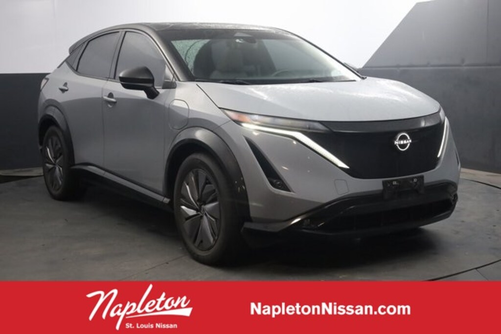 This Ariya is well equipped with 19" Alloy Wheels, 4-Wheel Disc Brakes, 6 Speakers, 8.896/7.679 Final Drive Ratio, ABS brakes, Air Conditioning, Alloy wheels, AM/FM radio: SiriusXM, Auto High-beam Headlights, Automatic temperature control, Brake assist, Bumpers: body-color, Carpeted Floor Mats & First Aid Kit, Delay-off headlights, Driver door bin, Driver vanity mirror, Dual front impact airbags, Dual front side impact airbags, Electronic Stability Control, Emergency communication system: NissanConnect EV & Services, Four wheel independent suspension, Front anti-roll bar, Front Bucket Seats, Front Center Armrest, Front dual zone A/C, Front fog lights, Front reading lights, Garage door transmitter: HomeLink, Heads-Up Display, Heated door mirrors, Heated Front Bucket Seats, Heated front seats, Heated rear seats, Heated steering wheel, Illuminated entry, Illuminated Kick Plates, Knee airbag, Leather steering wheel, Leatherette Seating Surfaces, Low tire pressure warning, Memory seat, Navigation system: Nissan Door to Door Connected Navigation, Occupant sensing airbag, Outside temperature display, Overhead airbag, Panic alarm, Passenger door bin, Passenger vanity mirror, Power door mirrors, Power driver seat, Power Liftgate, Power moonroof, Power passenger seat, Power steering, Power windows, Radio: AM/FM Audio System, Rain sensing wipers, Rear anti-roll bar, Rear reading lights, Rear seat center armrest, Rear side impact airbag, Rear window defroster, Rear window wiper, Remote keyless entry, Security system, Speed control, Speed-sensing steering, Speed-Sensitive Wipers, Split folding rear seat, Spoiler, Steering wheel mounted audio controls, Telescoping steering wheel, Tilt steering wheel, Traction control, Trip computer, and Variably intermittent wipers.